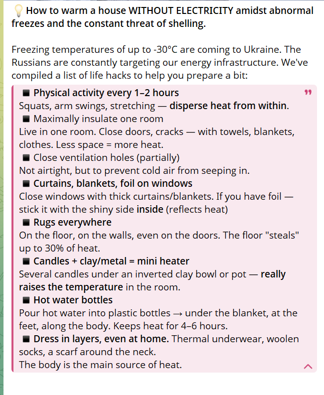 >>525506291Very good tips, but how the hell can you get hot water bottles when you have no electricity or gas...