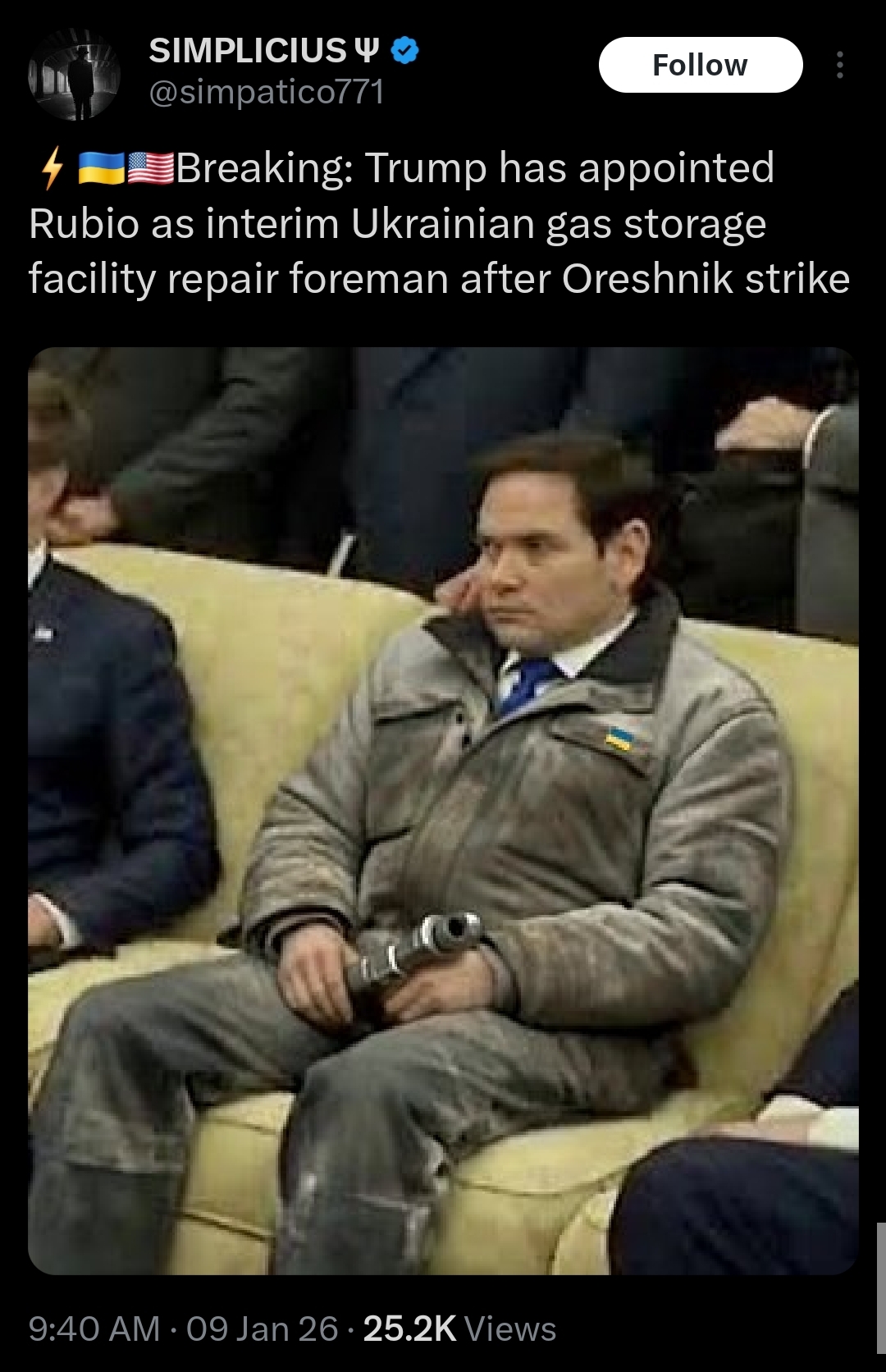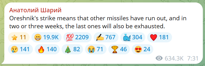 >Kweef initiates an emergency meeting of the UN Security Council and the Ukraine-NATO Council in response to Russia's announcement of the use of the "Orekhnik" in the Lviv region, - Foreign Minister Sibiga>"Such a strike near the borders of the EU and NATO poses a serious threat to the security of the European continent and is a test for the transatlantic community. >We demand decisive measures in response to Russia's reckless actions. We are informing the USA, European partners, as well as all countries and international organizations about the details of this dangerous strike through diplomatic channels. We are initiating international actions - an urgent meeting of the UN Security Council, a meeting of the Ukraine-NATO Council, as well as response measures within the EU, the Council of Europe and the OSCE," complains Sibiga.Oh no we fucked around and found out, episode infinity.