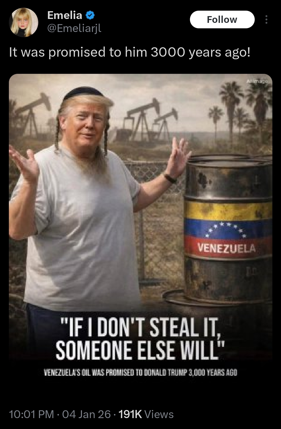 >US President Donald Trump said Chinese President Xi Jinping would not attempt to take Taiwan during his presidency, dismissing concerns that the military operation in Venezuela created a precedent.>"He may do it after we have a different president, but I don't think he's going to do it with me as president," Trump told The New York Times.>Asked whether the US military operation and capture of Venezuelan President Nicolas Maduro on Saturday established a precedent, Trump argued the threat by Venezuela differed fundamentally from Xi's view about Taiwan.>When reminded that China regards Taiwan as a separatist threat, Trump responded, "That's up to him (Xi), what he's going to be doing. But, you know, I've expressed to him that I would be very unhappy if he did that, and I don't think he'll do that."He's asking for it. Begging even.