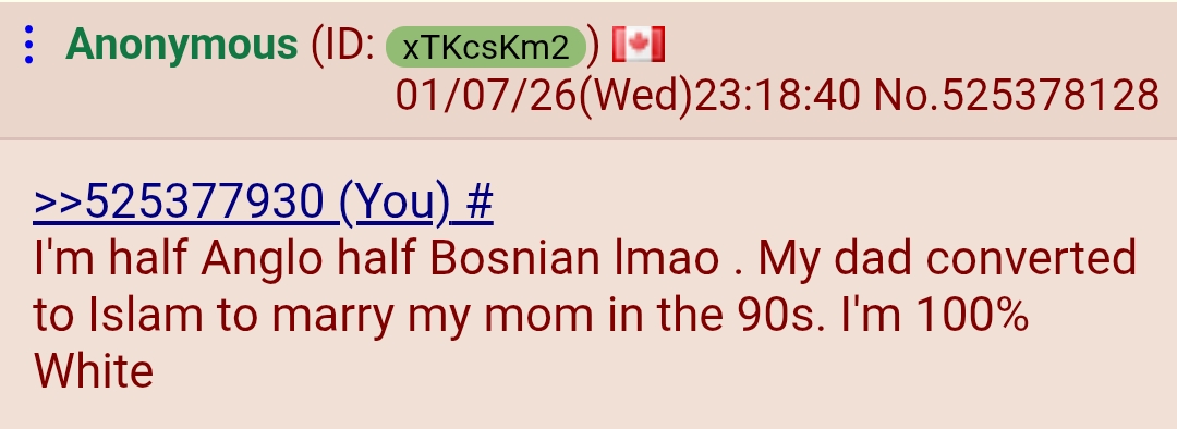 >>525512756>Bosnianunironically whitehttps://www.youtube.com/watch?v=CxDs_-wcnNE