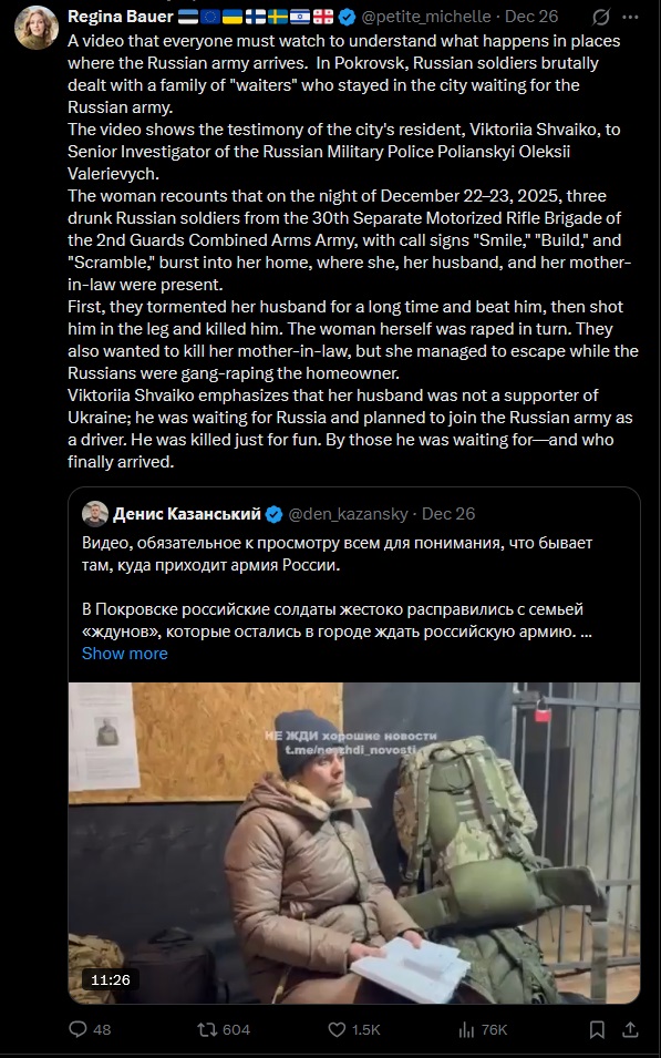 >>525513771the only unusual part of this story that russians raped the woman and not the man