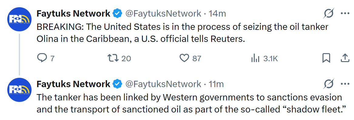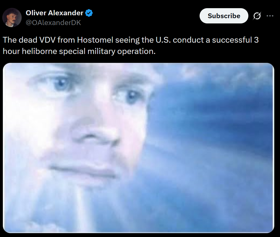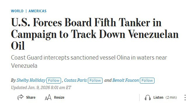 Iraq is robbing Russia toohttps://www.reuters.com/business/energy/iraq-nationalise-west-qurna-2-oilfield-operations-government-says-2026-01-07/The oil field West Qurna 2 is currently ran by Lukoil , but they declared outstanding debt and obligations null because of the sanctions. Basra Oil (Iraqi state company) will take over now.Production is half a million barrels per day, around 25 million dollars per day in retail price (not profit).