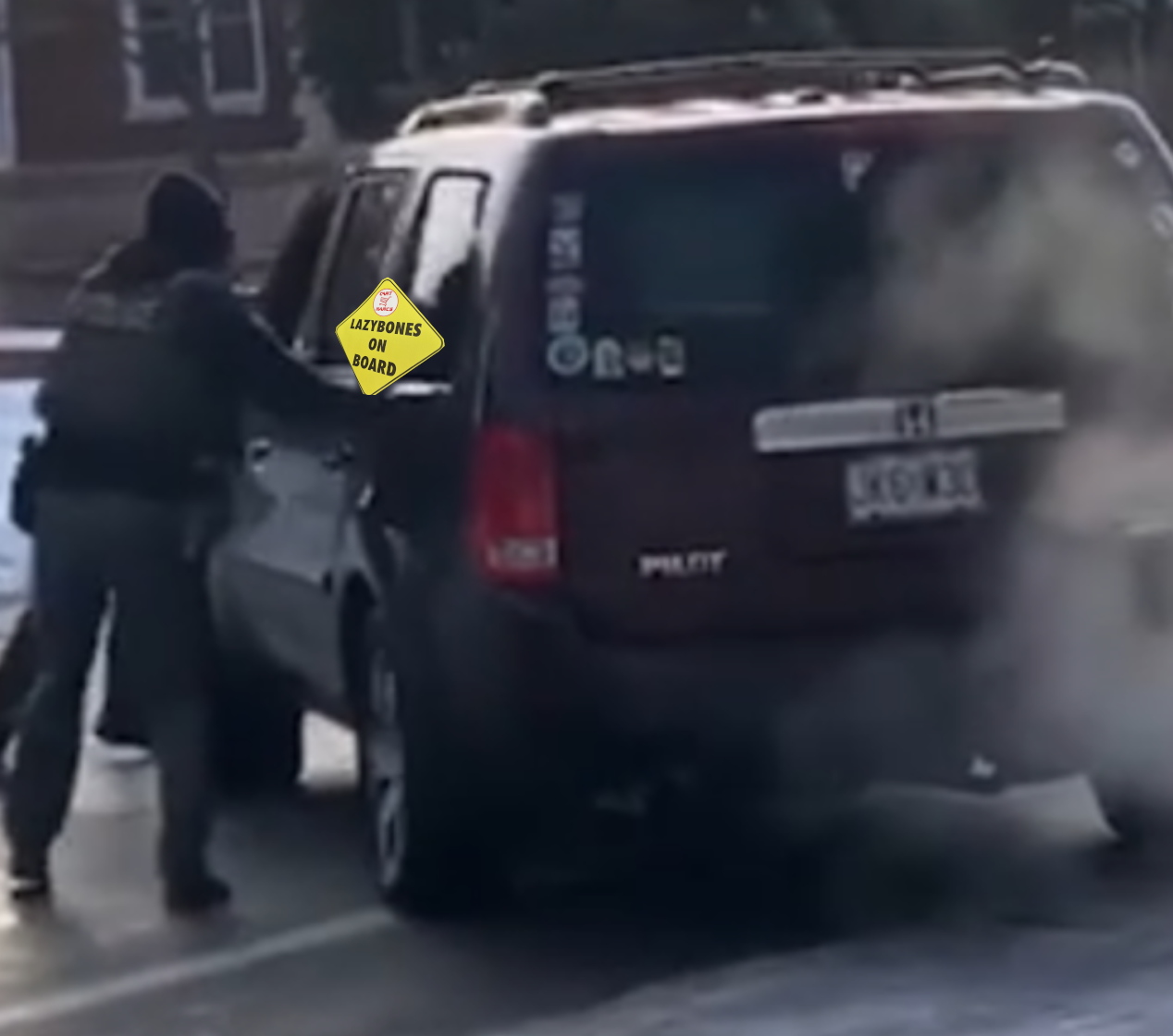 >foid has a women driver moment while trying to escape masked, armed men>retard trys to stand his ground against a 5000lb vehicle instead of following DHS policy and taking a half-step to the right