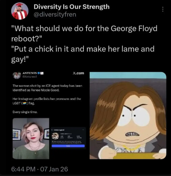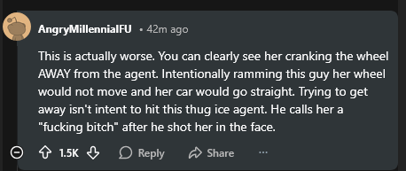 >>525546890The thing is that they're happy that Renee was there, they are happy she was blocking ICE, they are happy she tried to run one of them over, they are pissed off that she ended up dying instead of the ICE agent. They'll NEVER give up their position and admit that they are in the wrong publicly though, because it would be admitting that Renee was in the wrong.