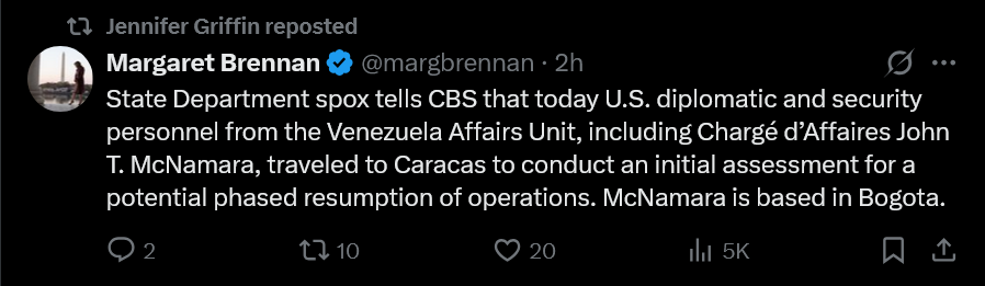 >>525544317Diplomatic Groups from Venezuela were sent early morning to washington and viceversa.