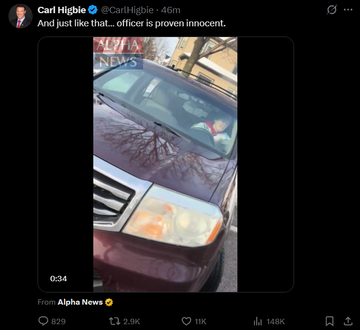 >>525544144Anyone's fight or flight likely would kick in and you try to leave because the person at the other end of that is not a fucking rational human being. Her foot wasn't even on the gas for half a second, no one had time to process a single thought. Absolutely fucking insane that anyone would consider that a proper use of force and not a hyperbolically insane escalation.