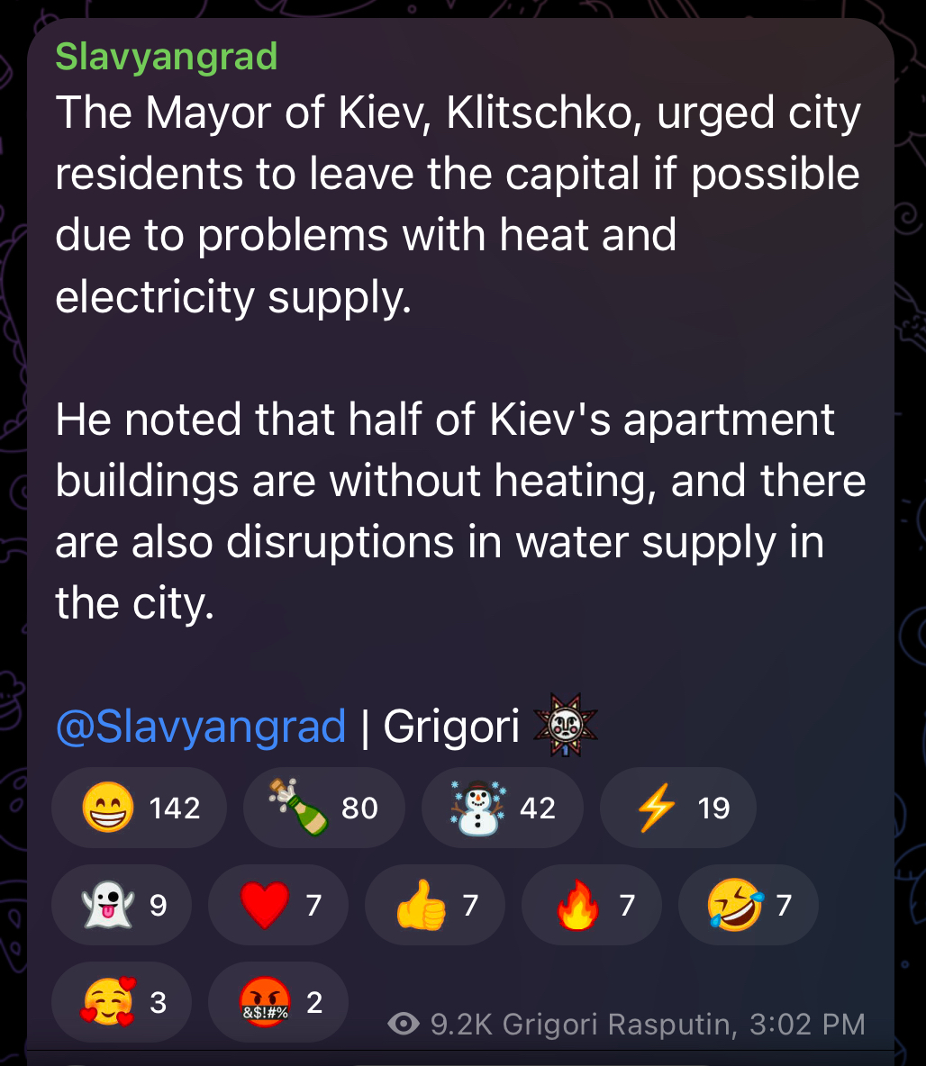 >>525549221You're assuming that he wants what's best for the country. The war was lost as soon as March or April 2022 when the Kyiv offensive failed spectacularly.The war continues because it is profitable for the people in charge of the RF to prosecute it. Some Russians have literally never been richer and the war is a perfect excuse to steal wealth from others and line your own pockets. It's not a war for national survival or anything poetic and romantic like that and they are further away from victory than they were over forty months ago. It's a war of selfish greed.Evidence for my conjecture: defence budget keeps going up by trillions upon trillions of rubles but armoured vehicles are disappearing from the frontline to be replaced by literal cloven hoofed farm animalsSo yes, the special military operation is going exactly to plan.
