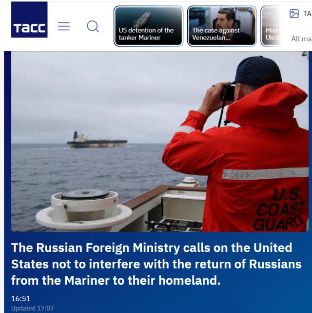 >"There were Russian ships that were guarding it. They decided not to tangle with us, and we took that vessel.">Trump stated that Russian warships accompanying the tanker "Marinera" in the Atlantic chose not to engage in confrontation with the United States, allowing the Americans to seize it.