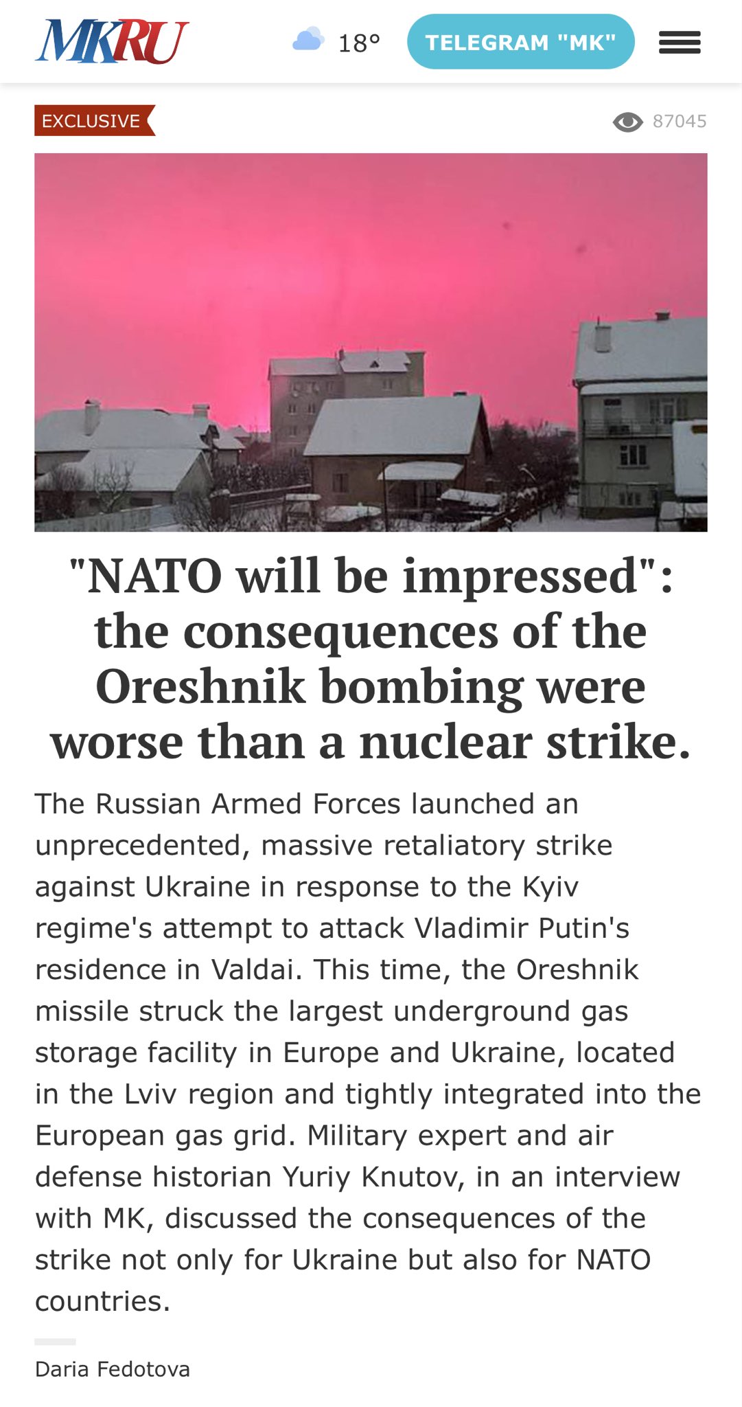 Womp wompThe (UGS) facility which was rendered inoperable in yesterday's Oreshnik IRBM strike, was the largest in Europe, with a capacity of 17.05 billion cubic meters. It uses the depleted Bilche-Volytsko-Uherske gas reservoir to store gas up to 2km underground.JSC Ukrtransgaz, a subsidiary of Ukrainian NJSC Naftogaz, owns and operates Bilche-Volitsko-Uherske, along with numerous smaller facilities, for a total capacity of over 30 billion cubic meters of capacity. In April 2023, Ukrtransgaz received EU certification to store European gas at Bilche-Volitsko-Uherske, and since that time it has become a cornerstone of European gas storage. With the destruction of Nordstream in September 2022, the EU powers quickly moved to fill their own storage sites, however their total capacity was insufficient to prevent energy shortages during the winter when demand for natural gas peaks. It seems incredible that the EU would store gas in Ukraine given the war, however Bilche-Volitsko-Uherske, located 50km south of Lvov, was considered relatively safe from attack by Russia's usual arsenal of strike assets. Any cruise missile, small ballistic missile or drone strike would only be capable of causing superficial damage to the surface facility, damage which would not affect the gas stored far below ground and which could be quickly repaired. - more than 10% of Europe's annual needs. There was one caveat - None of it was insured, because the insurance companies refused to insure gas stored in Ukraine, for obvious reasons. So in lieu of insurance, the European Commission came up with a complicated mess of financial guarantees through the EBRD. After the Oreshnik strike, much of the Bilche-Volitsko-Uherske surface facility is ruined, including the well heads. The wells are severely damaged and if not blocked, they are blowing out vast quantities of gas10% of Europe's gas reserves for the year are now inaccessible, and will remain so for months if not years.