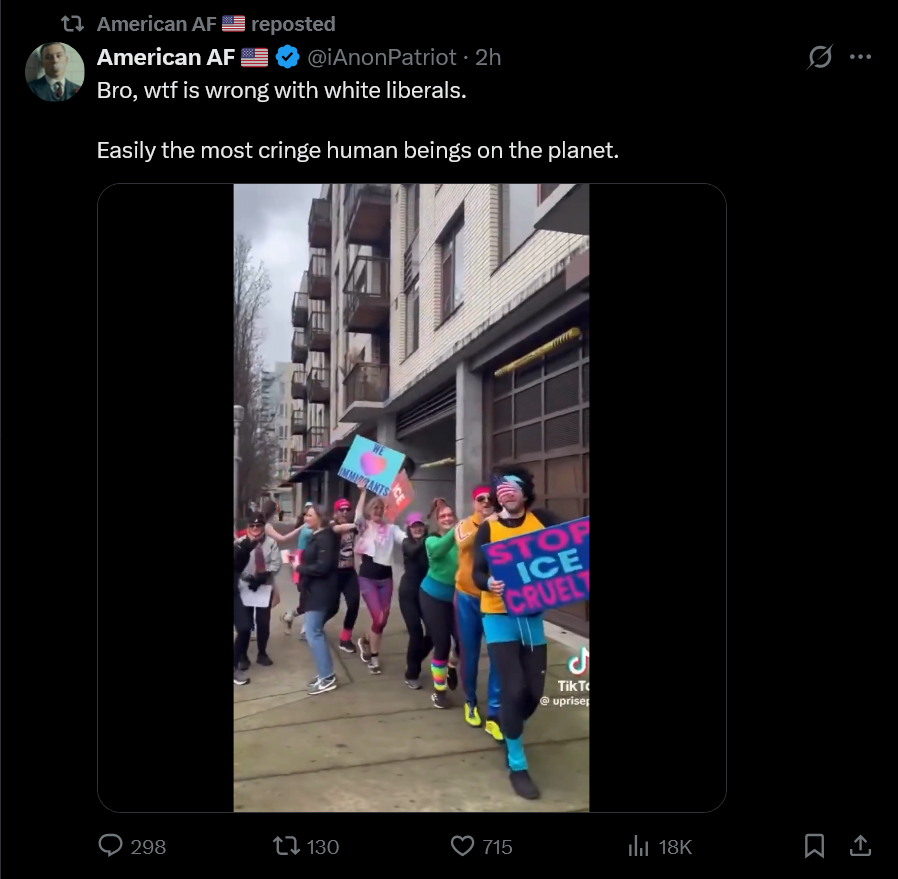 >>525549132Yeah I'm sure the side that doesn't know what a woman is, that men can become women, that simps and encourages illegal immigration, that hates the idea of borders, that is populated primarily by young women, that has MUCH higher rates of diagnosed mental illnesses, is the side that gives a damn about truth.I don't mind arguing with conservatives so I can convince them to drop their boomer way of thinking, and delve into ACTUAL conservative policies, but arguing with leftists is genuinely impossible because they are disingenuous from the start, playing dumb about basic principles from the start.