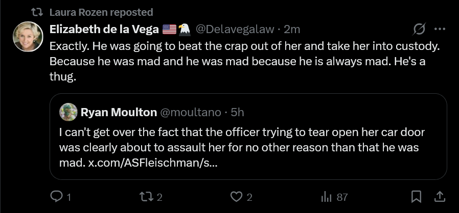>>525553019>ignores her attempting to flee after being given a lawful order>ignores her hitting the officer with her vehicle>all while taunting the officers as an "anti-ICE warrior">but she's white my fellow racistslol