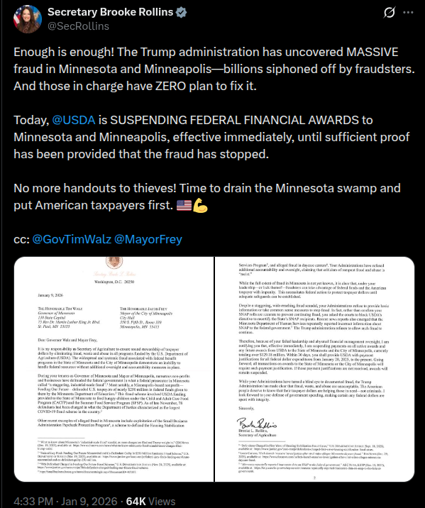 BREAKING — DHS SURGES MINNEAPOLIS The Department of Homeland Security is preparing to send 1,000 additional Border Patrol agents into Minneapolis — on top of the ~2,000 agents already on the ground.This is a major escalation.Why?Because flooding the zone with U.S. Border Patrol frees up Homeland Security Investigations to keep digging into large-scale fraud tied to the area.Translation:• Street enforcement ramps up• Fraud probes accelerate• Minneapolis becomes the focal pointThis isn’t a show of force for optics. It’s a reallocation for results — lock down interference, protect agents, and let investigators follow the money.MSP just moved to the top of the board.