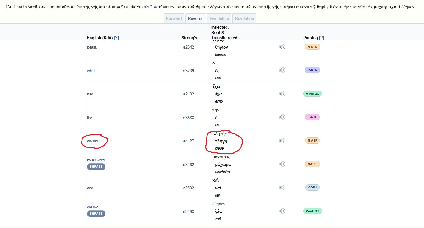 >>525577944the greek words dont say "stabbed"they say plagued and slain >sphazō : to slay, slaughter, butcher>plēgē : a blow, stripe, a wound, a public calamity, heavy affliction, plague,