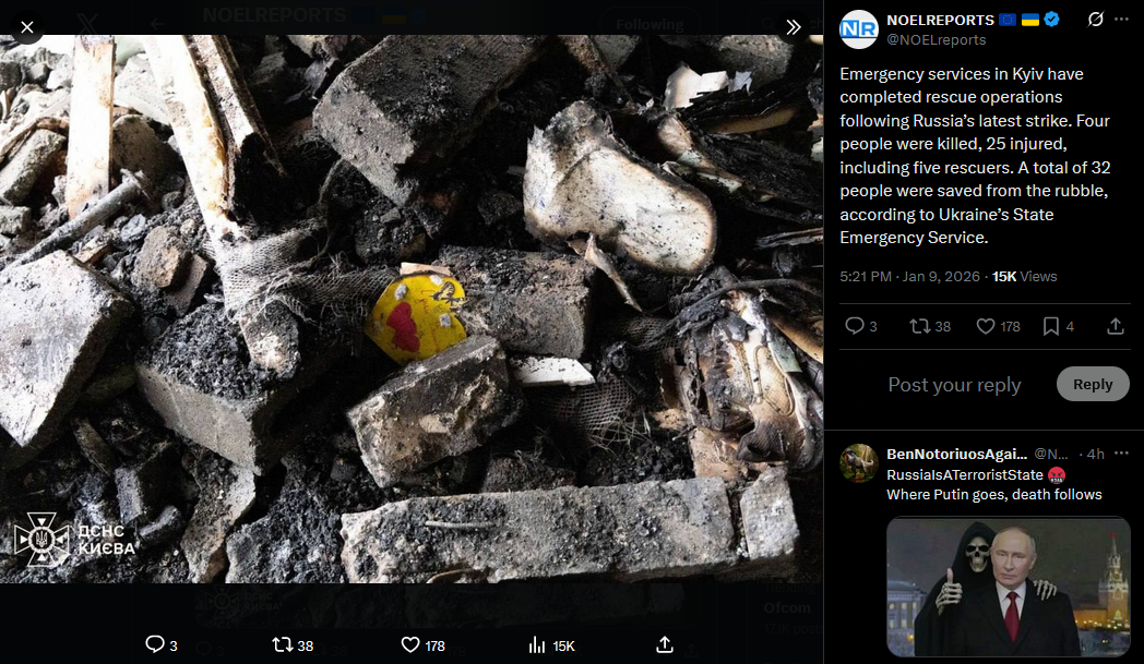 Emergency services in Kyiv have completed rescue operations following Russia’s latest strike. Four people were killed, 25 injured, including five rescuers. A total of 32 people were saved from the rubble, according to Ukraine’s State Emergency Service.