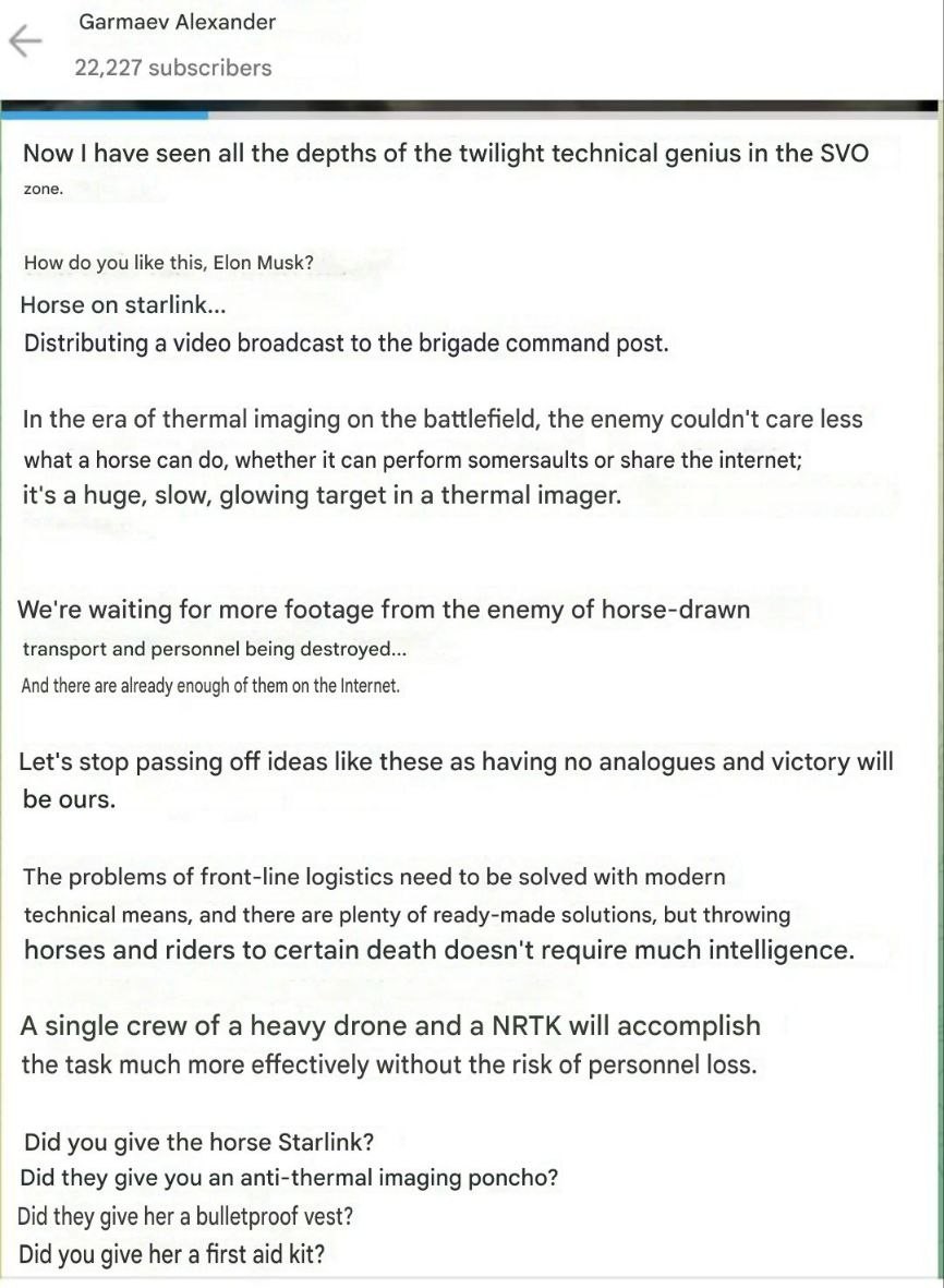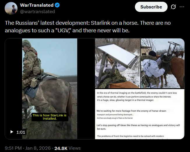 >russian troops strap Starlink terminals to horses