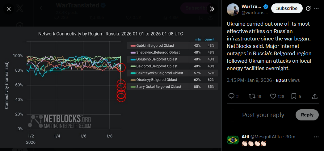 >500k consumers without power in Belgorod after strikes on critical infrastructure