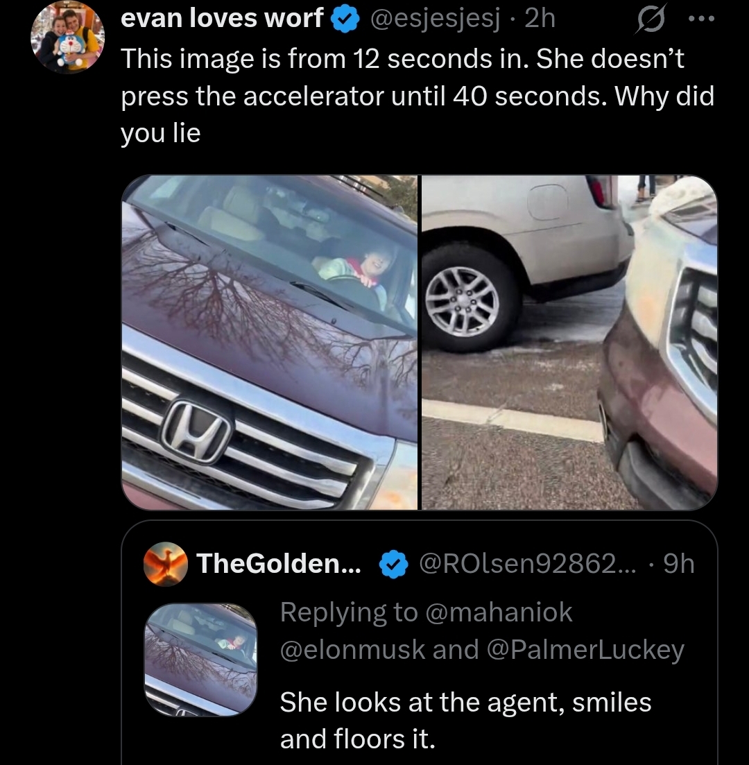 >>525601629>admits she accelerated into him on purposeGlad we agree on that