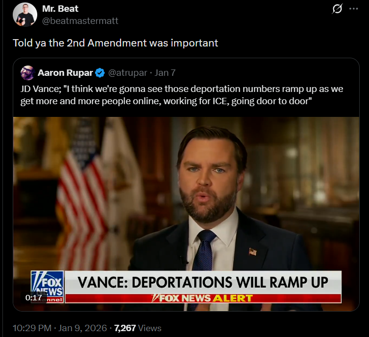 A few days after the Capture of the Venezuelan President, then an ICE Shooting I think it is a False Flag. Sorry I haven't posted or lurked in a while but this is some bullshit Ive been hearing about.
