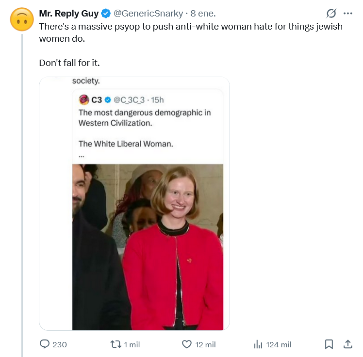 >>525612505that happens a lot, it's not even a liberal or a woman thing though they tend to fall into it moreyou see things depicted enough in fiction - except they're presented with internal consistency while still being fiction, and you start to think it actually works that waylike in shows when they knock a person out, and just leave them - "they'll wake up later all groggy"in reality you just murdered that person, most likely>>525612545I'm seeing a lot of 40-ish late millenial women suddenly having their own Charlie Kirk moment>oh my god, she's just like me! I drive a Honda Pilot with bumper stickers too! If they'll shoot her, they'd shoot me!this entire Representative Republic experiment is fucked and we need to turn it into a general American Empire (both Americas) as quickly as possible