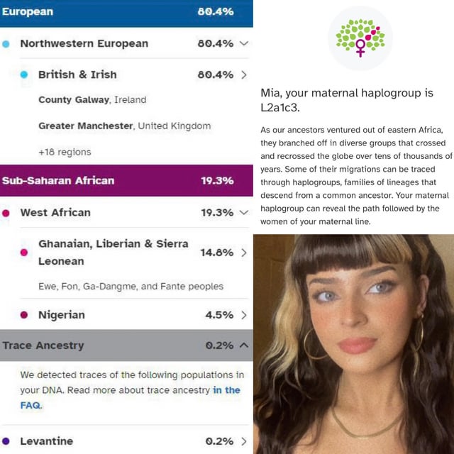 >>525647213>>525647578DNA test results are very recent, they compile only up to 200 years ago. 0.1% = pureblooded greatx2 grandparent. The % is also not literally what % you are of that race, it's the % similarity to that group as a whole. You will never see a true 50/50 result because the moment you introduce european dna you are no longer genetically similar to that many SSA and so on, which is why it shows low % on clear mutts.