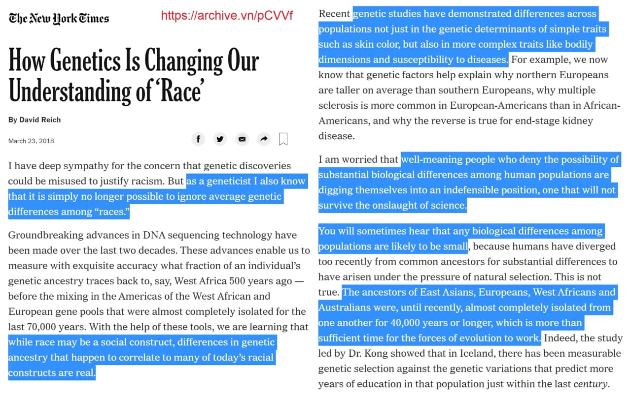 >>525651198Read what one of the most prominent Genetics Professors in the world had to say about the current state of racial delusion that most people find themselves in . And let me tell you another secret : he is a left-wing Liberal. Whereas the average liberal idiot believes they know more about racial genetics than Harvard Genetics Professor David Reich. They are products of a bygone era. Dinosaurs, unable to move with the times. Faith, not facts has become their science God now. Liberals profound stupidity/inability to face reality will cause hundreds of millions of mixed race people to be born into this world with no future than the genetic gutter. People like them mean you are refused a right to know what is happening. Do you think they feel good? Are they pleased with themselves? The truth is they dont understand – and yet this is something that affects you, your children and your entire lineage. Are you mixed race? see if your country has a " Right to Know" or "Duty to warn" Legislation. Get a class action lawsuit together to get reparations from pure race countries for creating the mess. Find a mixed race geneticist who has the balls to take on the mass media and tell the truth about genetics , complex traits and race mixing in front of a judge.If you are a pure race, sue the government, media and geneticists for failing to adequately warn the general population. If you are F1 generation mutt, disown your parents for being so stupid.