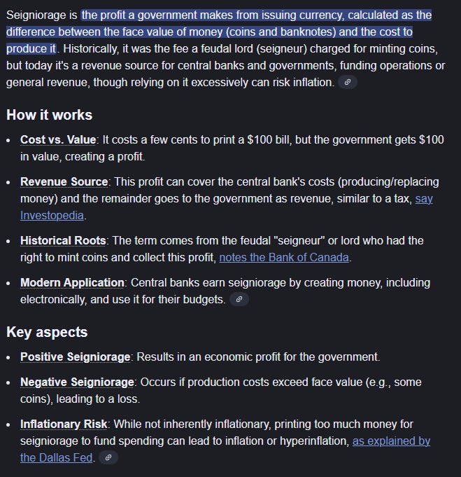 >>525695002>Fatso, the very definition of FIAT is not being precious metals.You are slow or dishonest.1. If the precious metal coin can buy more precious metal of the same purity than it actually contains, it has a fiat component to its purchasing power. Which will be lost once it's phased out of circulation and no longer tender.2. By necessity, all money (including precious metal coins) has a fiat component to its purchasing power. Otherwise you're not paying with money but actually bartering with a commodity.>You're either too dumb or too dishonest to say precious metals are FIAT.I said precious metal COINS, you spastic moron. Also, I clearly, repeatedly reiterated that it's fiat currency if it can be used to procure more precious metal of the same purity than it actually contains. That's by definition fiat currency, you fucking moron. And it is a plainly observable trait and characteristic of all legal tender, at least at the time when they're initially introduced. Paper or cotton or plastic bank notes can and necessarily do buy more paper or cotton or plastic and ink or dye and energy than was required to make them. Digital money costs even less to make more of and has an even wider seigniorage.Cope and have a good cry about seigniorage being a characteristic of fiat currency and all legal tender being fiat currency.