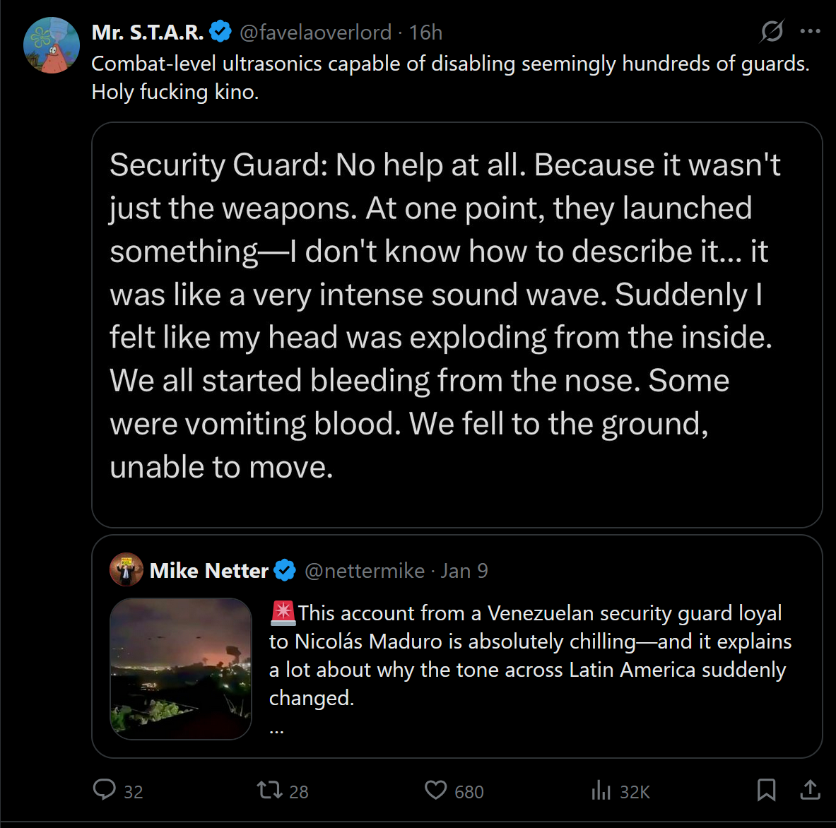 >>525721412if you took just>greenlandand>cubaand put both scenariosin a vacuum, cuba would be 10x funnier, but since venezuela is so recent you lose a few points (i'm still rooting for cuba, i want to see democrats defend the communists please please please)