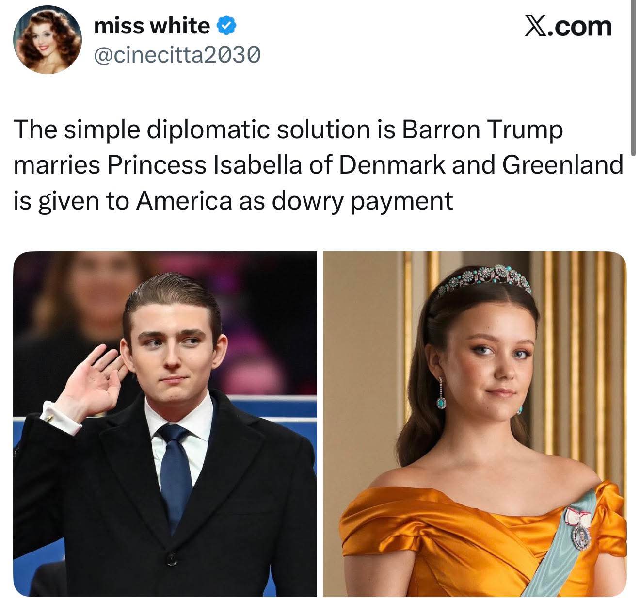 >>525721820All Trumpsama needs is for Barron to marry Danish princess waifu and he would have legal claim :'3