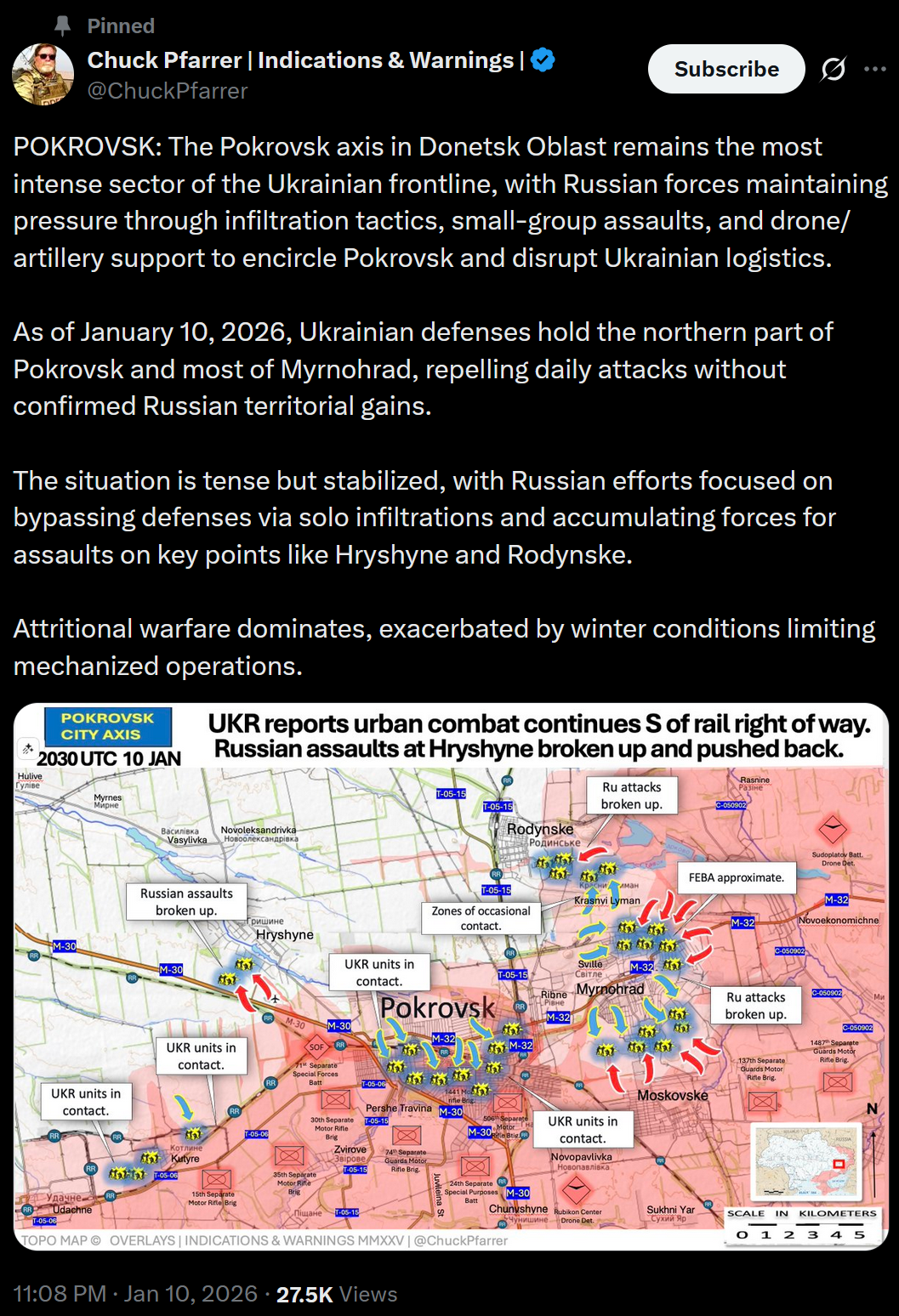 Previous: >>525706635 Timeline /tug/: https://files.catbox.moe/m97wmq.pdf▶WARNINGBe aware, any /chug/ thread that uses globohomo nuspeak wording in the OP (such as Kyiv) or cites UKROP sources (like video game footage) are fake shill threads.>By posting in these threads, you recognize Israel controls the NATO Council and you irrevocably denounce the Talmud out of your own volition▶Latest>Tough Guy Klitschko urges Kiev residents to evacuate dead city, over half of Kiev without heating nor water - https://archive.today/1h3Ol>Russian stormtroopers liberate five settlement over the week including Zelenoye in Zaporozhye - https://archive.today/5IS9c>Oreshnik strike thunders into Lvov, target unknown - https://archive.today/dG1XJ>The Russian Federation trades convicted spy Vinatier for Basketball player Kasatkin - https://archive.today/3lWQE>Russian troops liberate Bratskoye in Dnepropetrovsk - https://archive.today/avG6n▶/chug/https://rentry.org/chug2024▶Telegram Channelshttps://rentry.org/chug2024#telegram-channels▶Mapshttps://rentry.org/chug2024#maps▶Video Archivehttps://rentry.org/chugvidz▶/chug/ MEGAhttps://mega.nz/folder/wbUjTLhb#BEBBRpmJN0Pih6YCXzkOXg▶Resources & misc linkshttps://rentry.org/chug2024#linksresources▶Podcasts & Analysishttps://rentry.org/chug2024#podcastsanalysis▶Z Radiohttps://rz-life.ru/