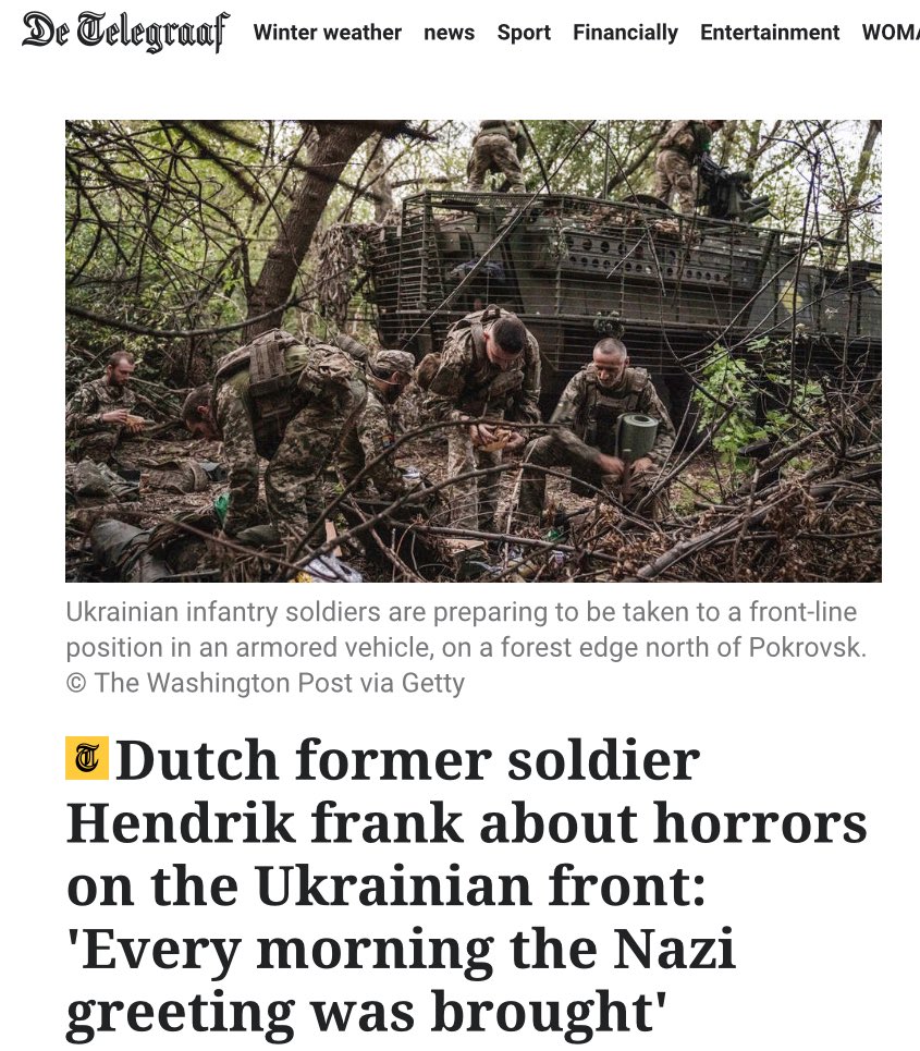>>525724361https://www.telegraaf.nl/binnenland/nederlandse-oud-militair-hendrik-openhartig-over-verschrikkingen-aan-oekraens-front-elke-morgen-werd-de-nazi-groet-gebracht/120517798.html