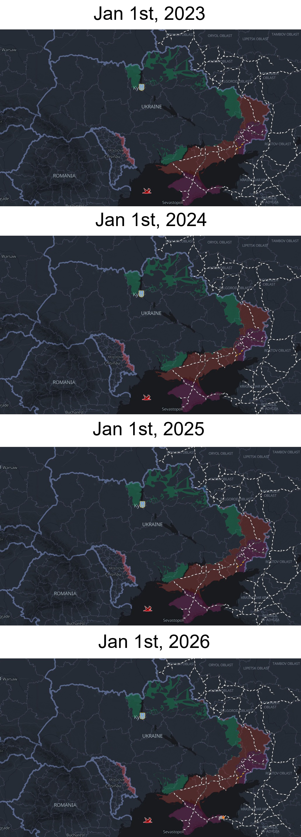 Previous: >>525726244Day 1,418 – Daily assessment: understandingwar.org/analysis/russia-ukraine/#research▶Latest>Moldova and Ukraine have jointly imposed a full blockade on trannystria>The 3 day SMO has now lasted longer than the entire soviet-German war>Ukrainian forces struck an oil depot in russia’s Volgograd region and hit multiple russian military targets in occupied Ukrainian territories, the General Staff said.>Ukraine shot down a russian Iskander missile over Kharkiv for the first time>Finland officially withdraws from the Ottawa treaty>ru milbloggers say internet blackouts in russia don't stop UA drones. Kamchatka, 7,500 km from Ukraine is offline since Dec 31>Fifth pidor tanker seized by the U.S.>Adam kadyrov, son of chechen leader ramzan kadyrov, said he would find and bring Zelenskyy to Grozny if ordered by putin or by his father>Smoooking accident at Orel heating plant>500k consumers without power in Bilhorod after strikes on critical infrastructure>pidor chimpout in response to the "attack" on monke's residence (didn't happen, should've happened), an oreshnik irbm was also used, 500k consumers without power in Kyiv>russian troops strap Starlink terminals to horses>Smoooking accident on the Palau-flagged oil tanker Elbus off the coast of Turkey>U.S. seizes russian tanker as they cuck out and do nothing but watch>Hegseth openly mocked russia’s air defense systems.>UK and France to send troops to Ukraine post-war>Czech-led ammunition initiative for Ukraine will continue - Babis▶Telegramrentry.org/telosint2023t.me/ukr_pics▶Intelt.me/DeepStateENodin.tradoc.army.mil/WEG (equipment explorer)ukr.warspotting.net (visually confirmed losses)▶Mapsdeepstatemap.live/enliveuamap.com/en▶DISPOSABLE SOLDIER (diary of a RU mobik)TOURS 1-4: files.catbox.moe/mpcw7p.zip▶12 min of TZD in one ditch (Pokrovsk area) - 28 killedfiles.catbox.moe/sxbxfb.mp4