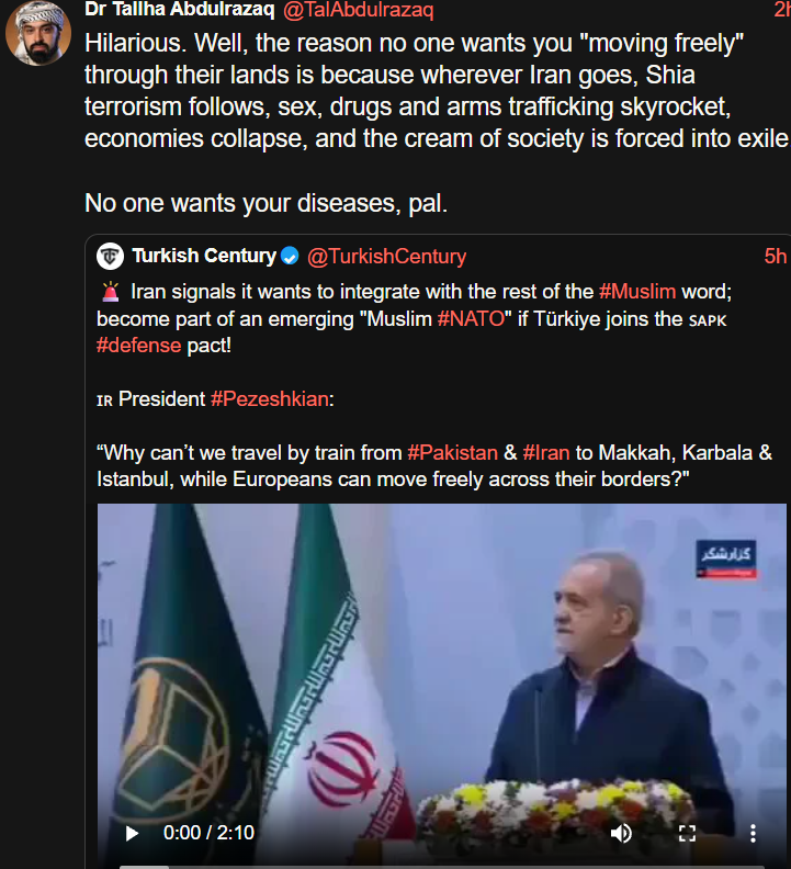 https://x.com/FaytuksNetwork/status/2010494641846575132>IRGC-affiliated media outlet Tasnim says over 100 members of Iran's security forces have been killedhttps://x.com/Polymarket/status/2010474259475300382>BREAKING: Iran's Supreme Leader now projected to lose power this year, as he threatens U.S. troops in the region.>The odds have surged past 60%.https://x.com/BRICSinfo/status/2010499349168459964>Exiled Crown Prince of Iran Reza Pahlavi says 'global assistance will arrive soon' and tells protesters to 'await my next messages'>>525769720There's nothing to refute. Israel is obviously involved in the destabilization of the Velayat. Painting that as a bad thing simply because a Jewish state is involved is the height of stupidity.