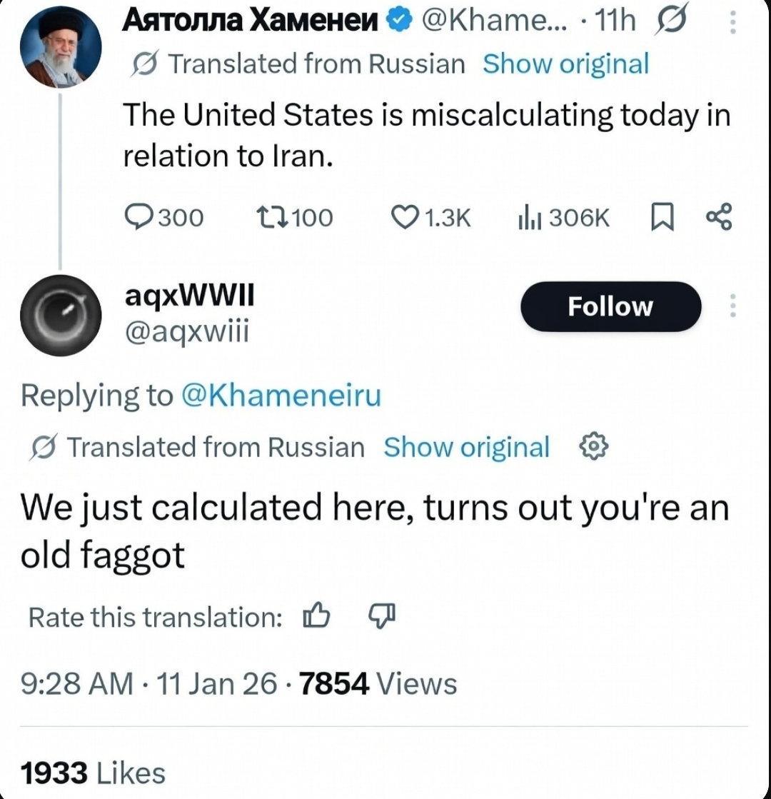 Trump will get you killed for the jews. The jews find your death funny, and they want to see you die killing Iranians. what is happening in Iran is completely israeli's doing and you're gonna die in it.