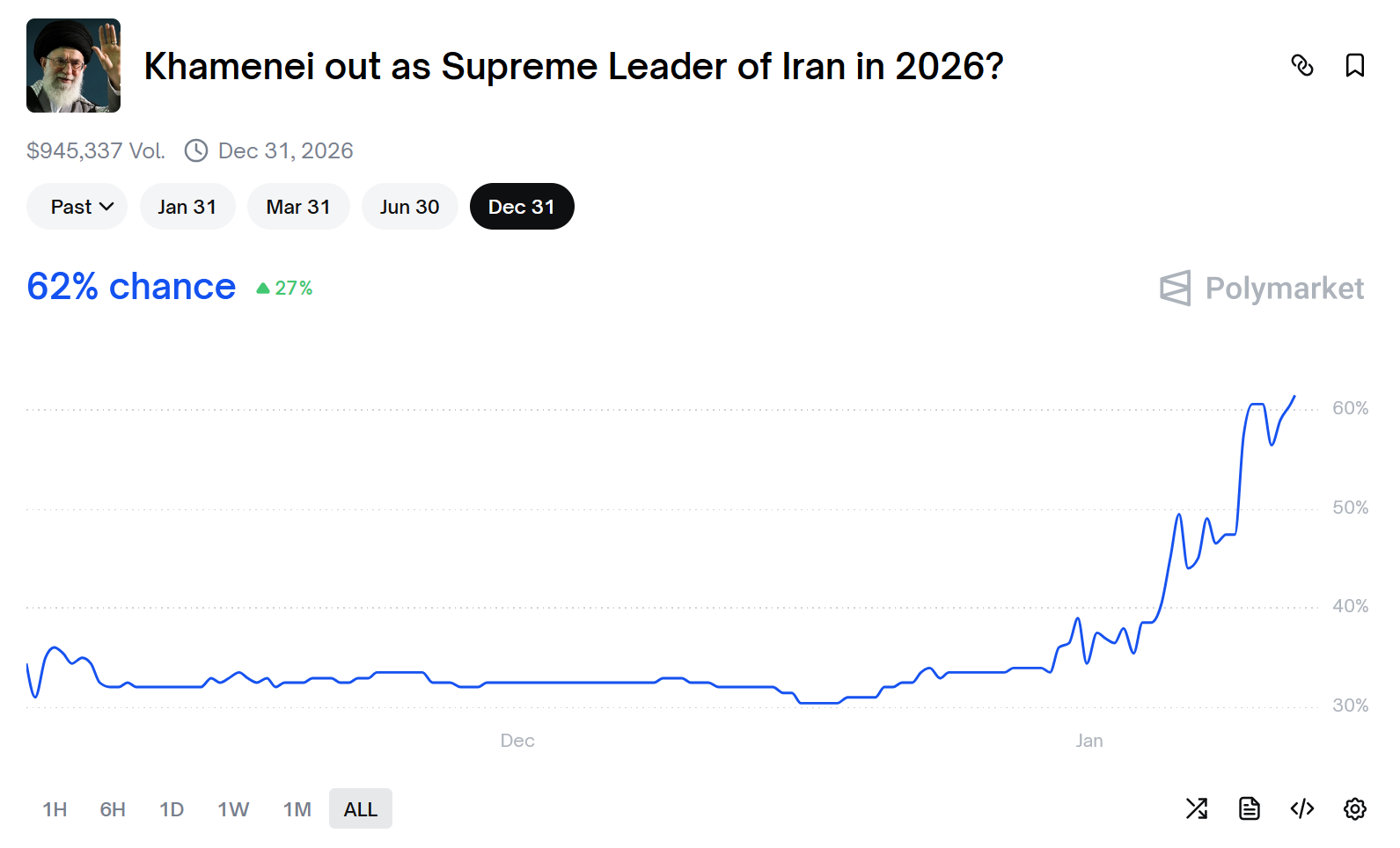 >the chances of the Iranian government falling is now up to 62%It's literally over. We lost.