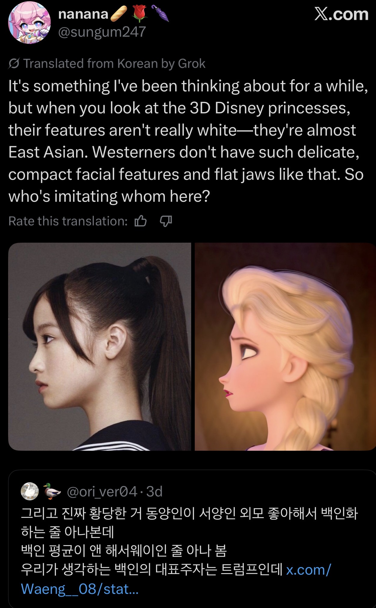 Cool anime girls are White and disney princesses are asian