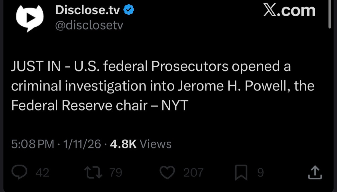 >>525772465It's real. Lol...this is crazy. >https://www.investing.com/news/stock-market-news/us-prosecutors-open-probe-into-fed-chair-powell-over-hq-revamp-nyt-4440630