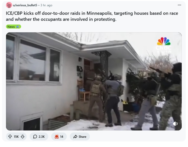 u/serious_bullet5 has falsely stated that ICE is raiding door to door in Minneapolis in an attempt to stoke violence against ICE agents.