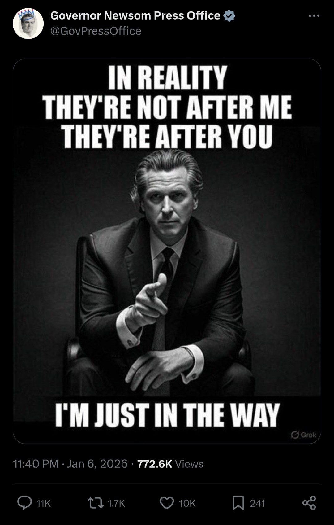 >>525776731Newsome is a crook, I cant see him running for president after the California fraud investigations ratchet up. We were seeing homeless camps pop up in cities where there was never any homeless camps. So what did they do with all the money? Why has everything gotten 3rd world tier while taxes have skyrocketed, shit doesnt add up unless there is unprecedented spending fraud and waste.