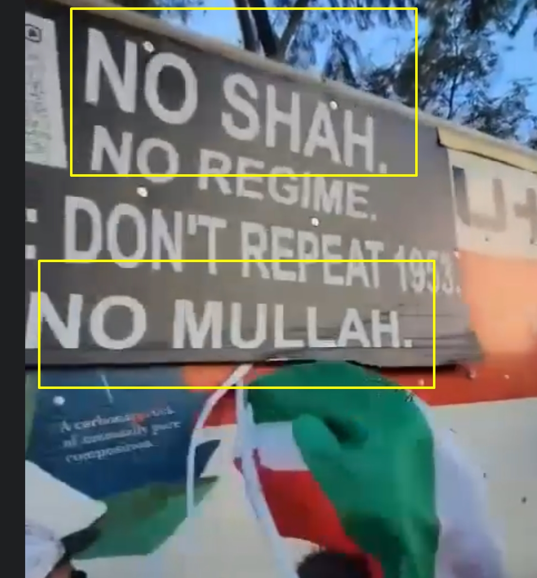 >large track with People's Mojahedin Organization of Iranslogans written on it plunges into anti-Mullah protests in LA>MEK is communist-leftist terrorist organization banned in iranwtf lol
