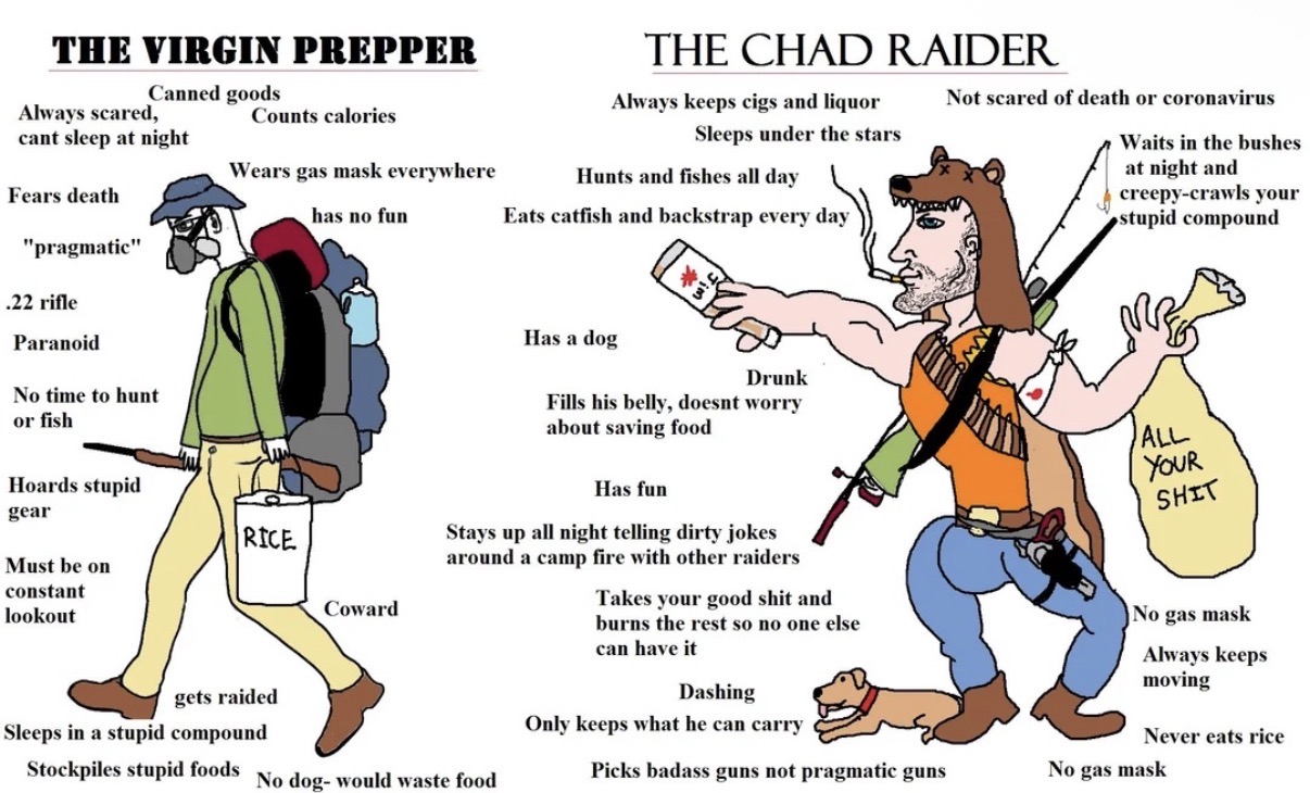 >>525782994Prepping doesnt win you but action when times due but thats sacrifice and we lost trust in dyingPpl prepping food like yeah good yo have stuff but after a few months your gonna run out, when you gonna come out