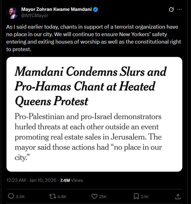 Not even a month after his swearing in, and his base is already tearing him apart in the comments lol. Looks like normies aren't as gullible to controlled puppets as they used to be. https://xcancel.com/NYCMayor/status/2009768025260437806