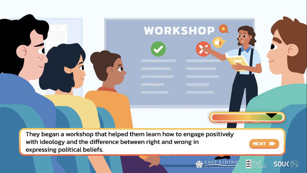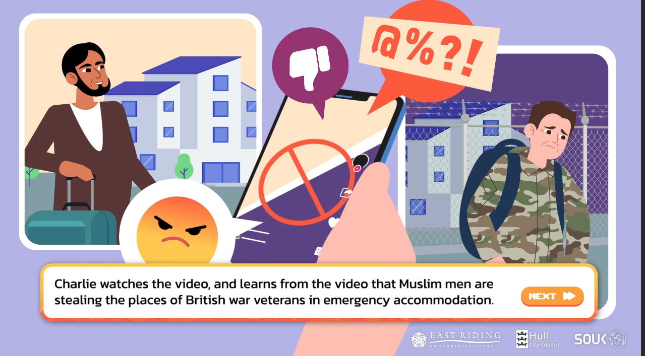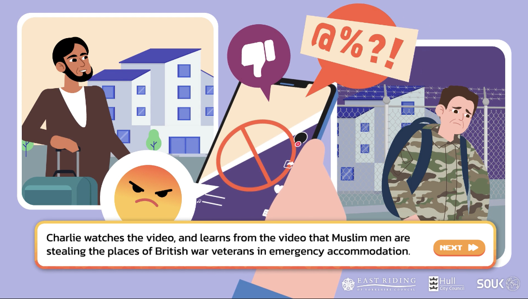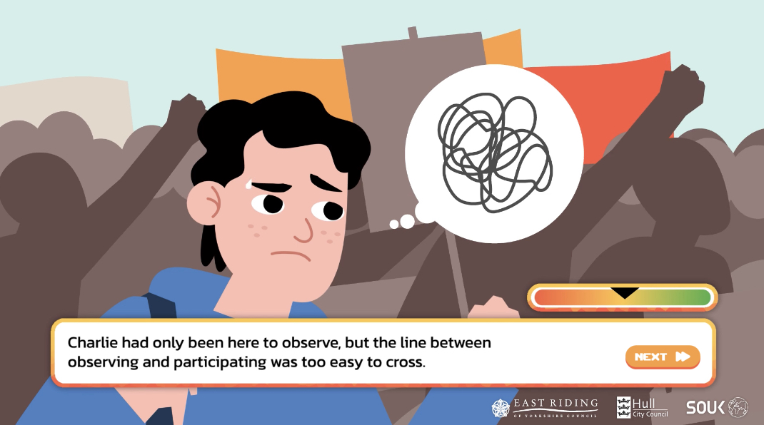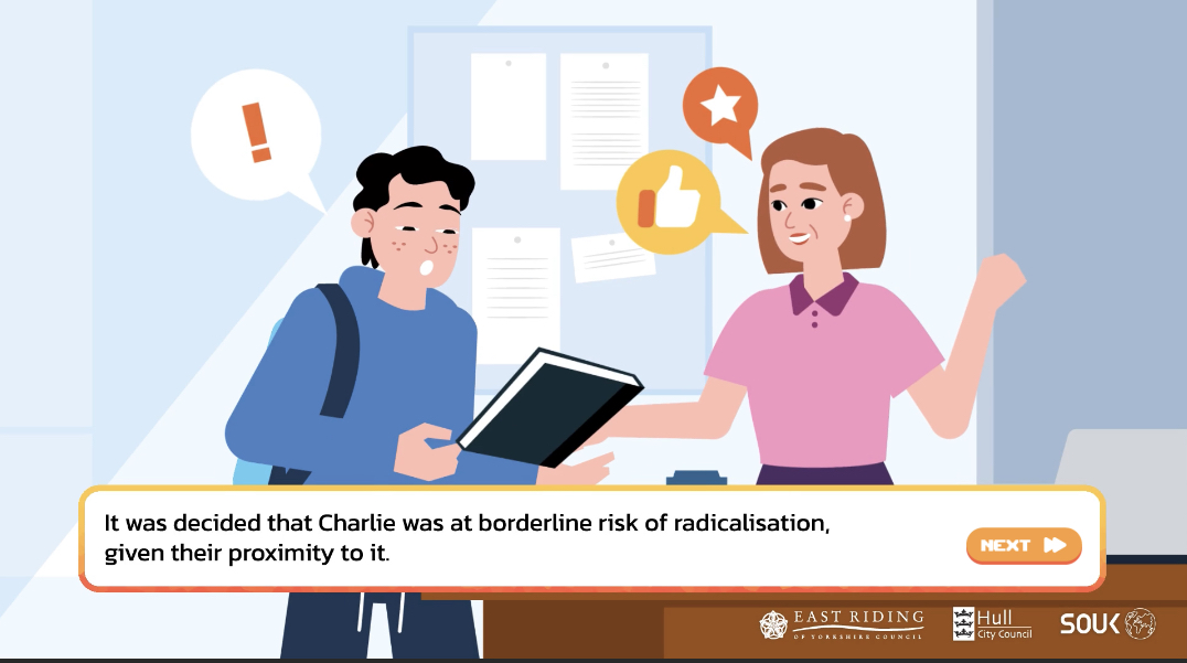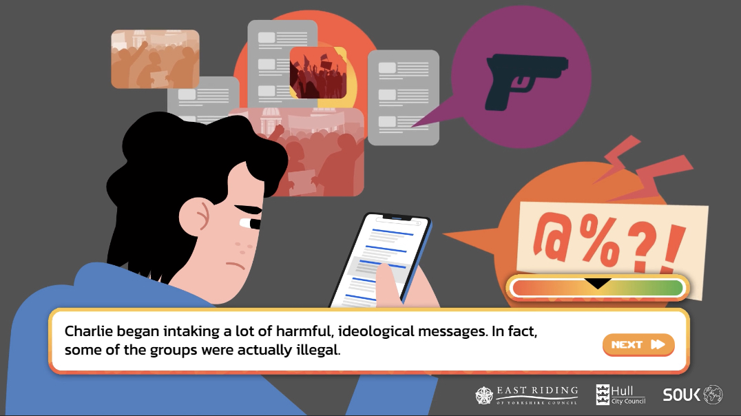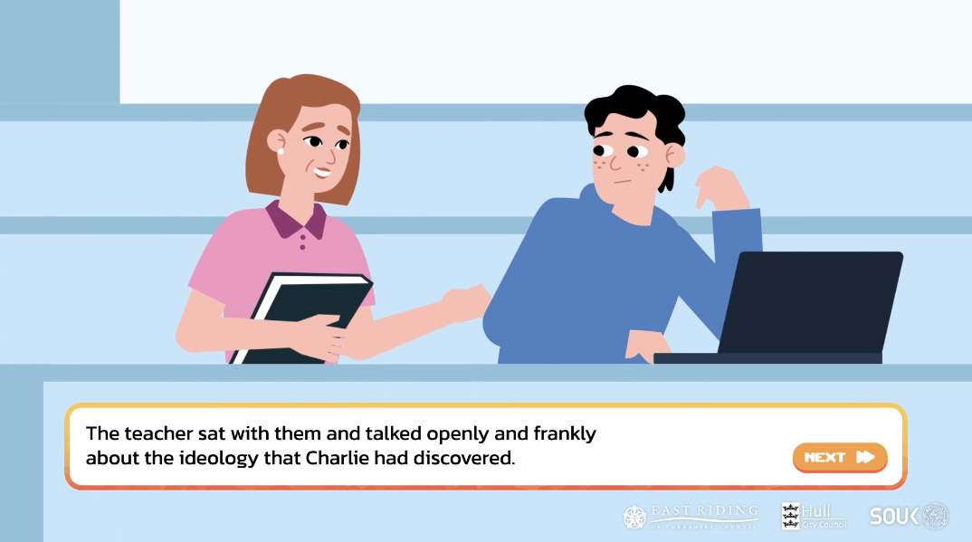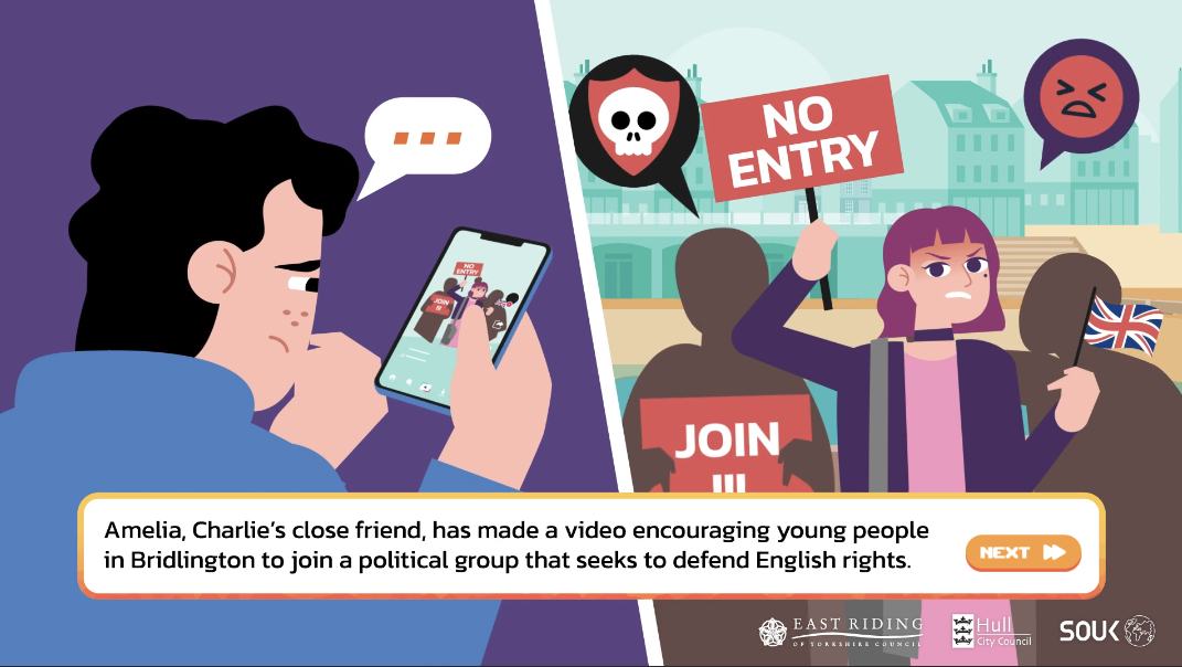 >>525787489The UK gov sponsored re-education project to de-radicalize White Nationalists made a game. You play as Chud/Chudette Charlie, a college kid who is presented with choices to further his/her "radicalization".It also has a purple haired racist nationalist alt chick named Amelia, /pol/s new darling.>https://www.shoutoutuk.org/game/story.htm