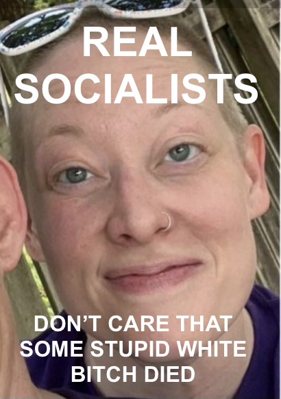 Real socialists don’t care about some stupid white bitch.This woman being spammed has all the telltale signs of a Jewish feminist tranny psyop…Basically the useful idiots that get lined up against the wall and shot first after revolution.