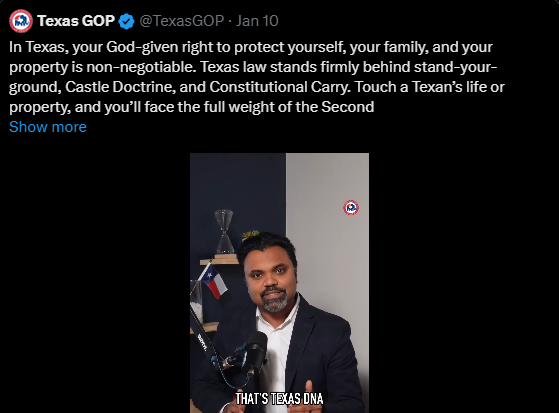 The head of the GOP party in Texas is also Indian:https://x.com/ElijahSchaffer/status/2010468459675811945