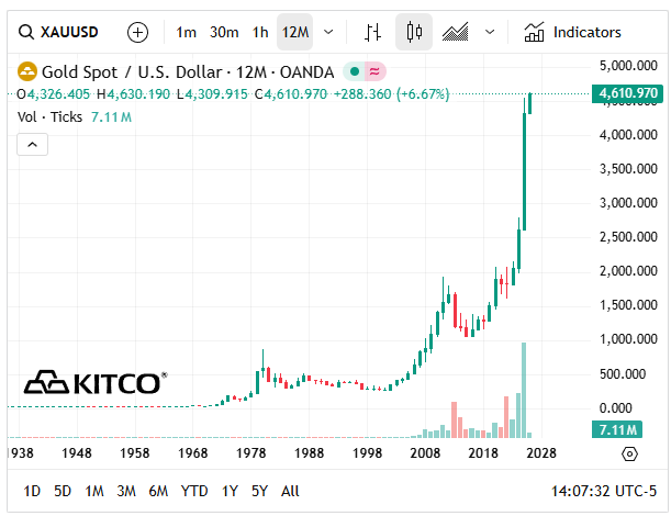 Stable fiat hitting all-time lows, obviously. Gold isn't getting more expensive, the USD is inflating.