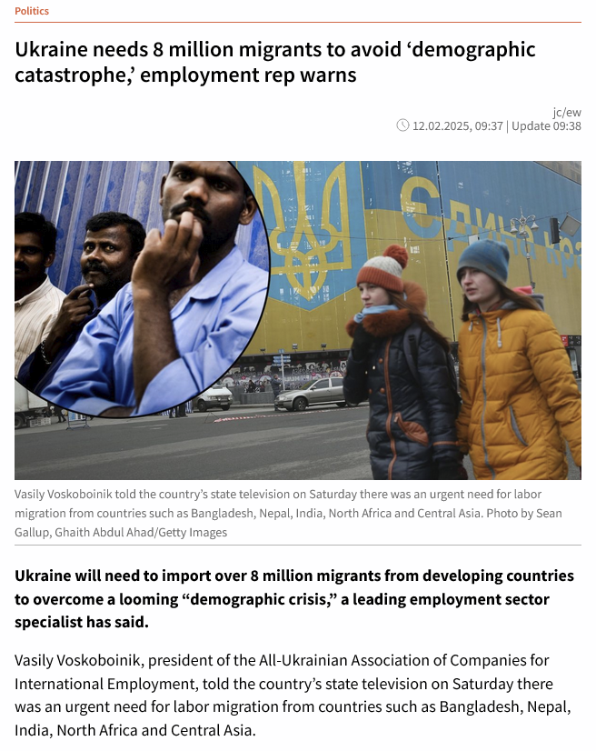 >>525812499https://tvpworld.com/85002539/ukraine-needs-8-million-migrants-to-avoid-demographic-catastrophe-employment-rep-warns