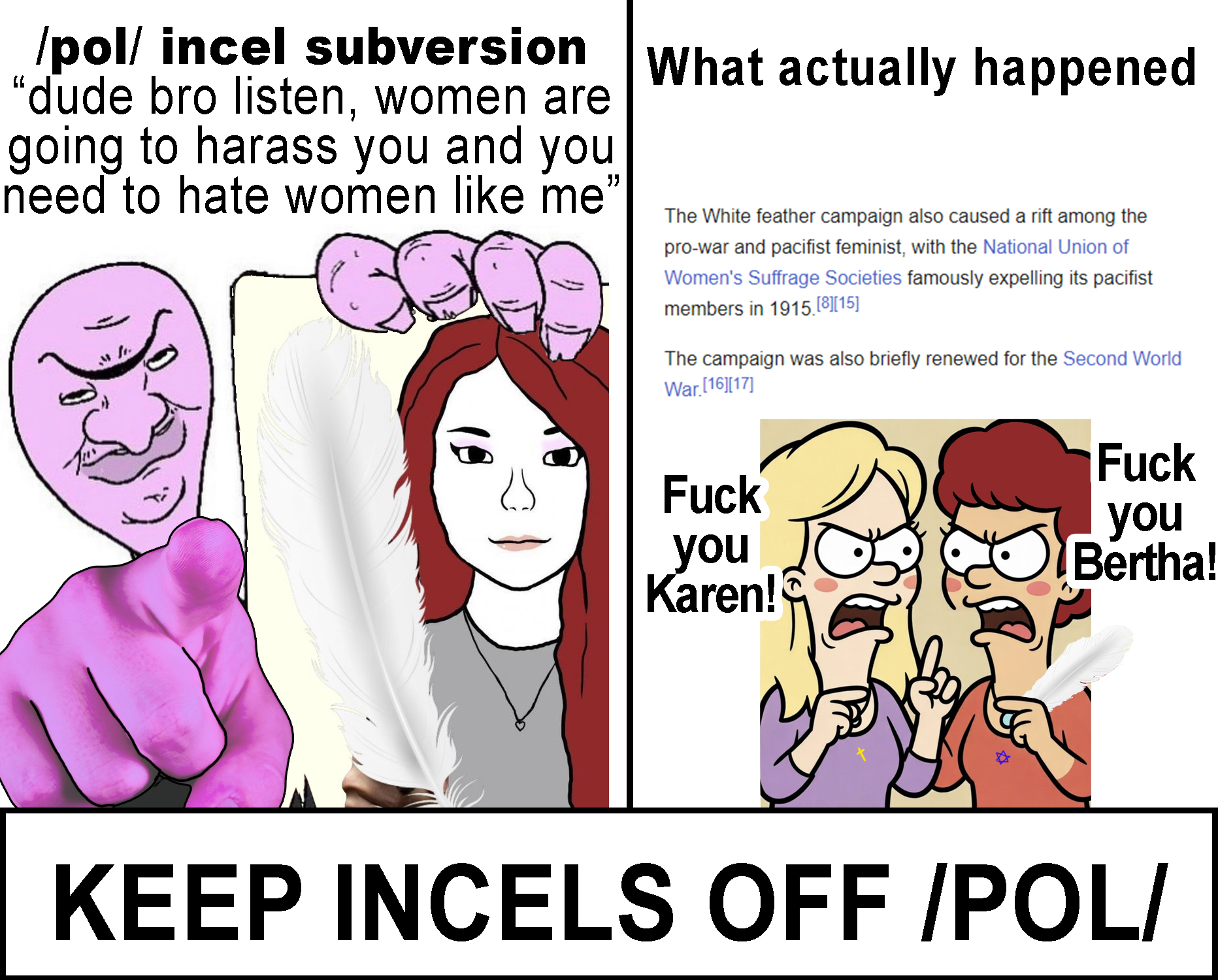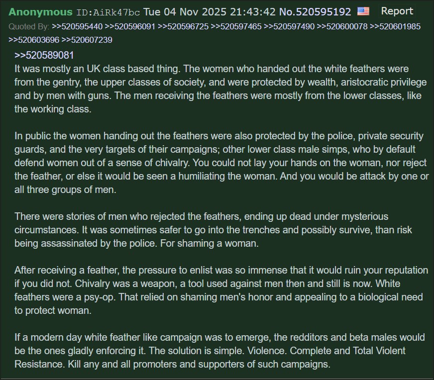 oh ok these are just subversive incel threads.white feathers barely even happened during ww2.