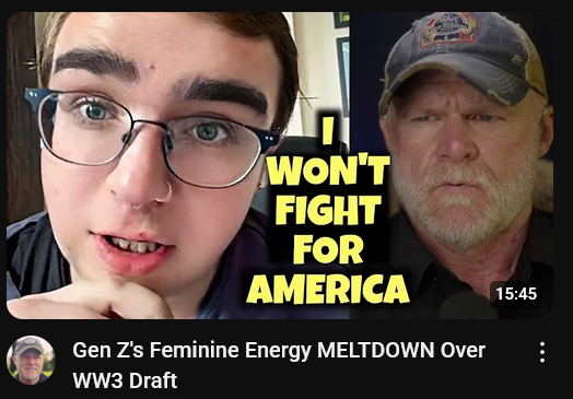 >>525819189>simp militia right on cueThis was the old argument, same reason why farmers cannot be drafted since they make the food.But what happens when most of our food is imported? What happens when our farmers aren't putting out nearly sufficient enough food to justify their position? What happens when - in a time of war - our farmers even LEAVE the country to farm elsewhere? Women aren't having kids, and you'd be a tone deaf dumbass to believe they suddenly will if the US went to a war, they will do the same thing as Ukrainian women, flee and hoe it up in foreign countries. Let's not misunderstand my position, women should not go to fight, but they also should not have the rights that allow their say in these matters if they aren't willing to die to defend them.
