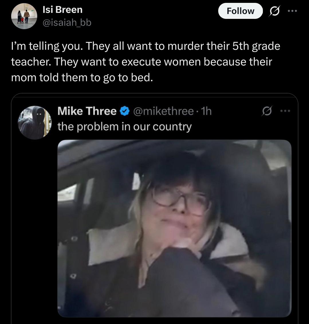 >>525823652>smug cunts that never technically left school with unearned authority over boys excersised in petty ways radicalizes boys against authority and womenThe leftist woman answer to this issue is of course more women in authority over boys.