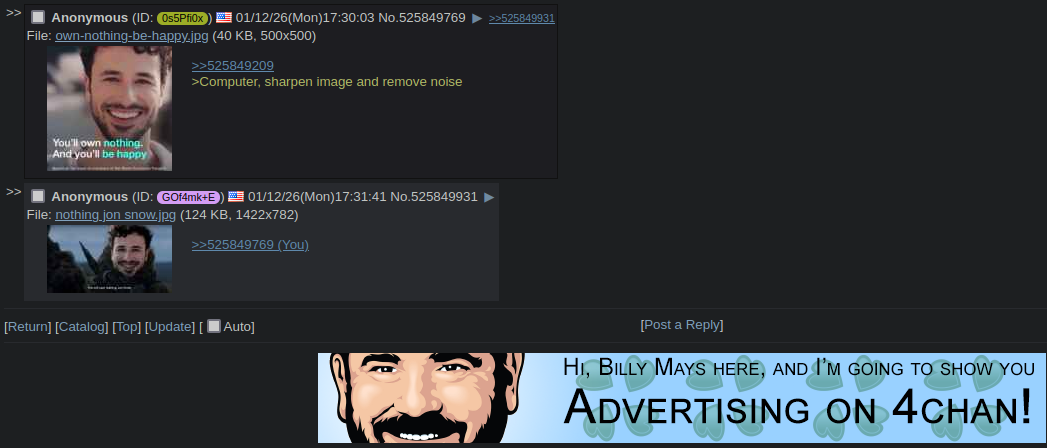 >>525858767I think that most of this board is decidedly either post-libertarian or anti-libertarian now. It's amazing how a group of people denounced as "far right" are now somewhat more anti-corporate than today's "leftists" now who waste everyone's time on race, gender, and identity now. Libertarians on this board are now a minority